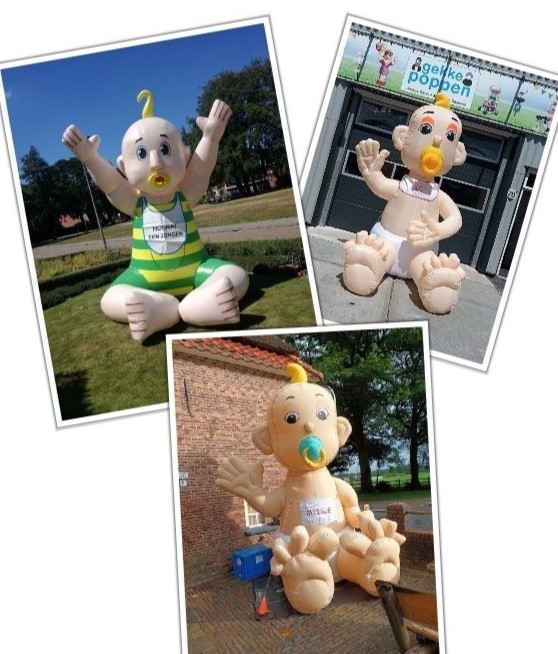 Baby geboren…? Huur de leukste opblaasbaby. Met verwisselbaar slabbertje voor jongen of meisje. Tot 350 cm hoog Bekijk alle geboorte